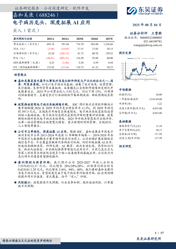 【东吴证券】【20250804】嘉和美康-电子病历龙头,深度拓展 AI应用-17页