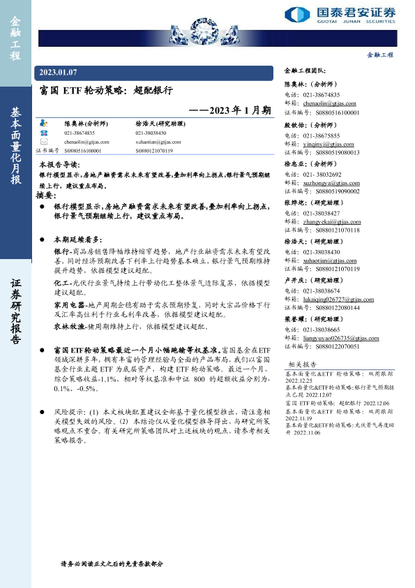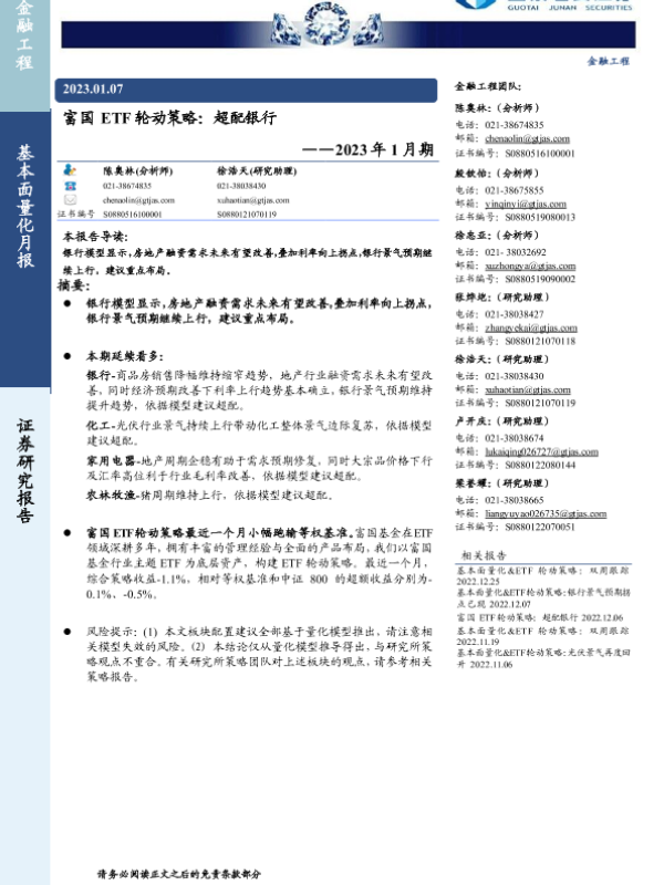 【国泰君安证券】【20230107】2023年1月期:富国ETF轮动策略,超配银行-19页