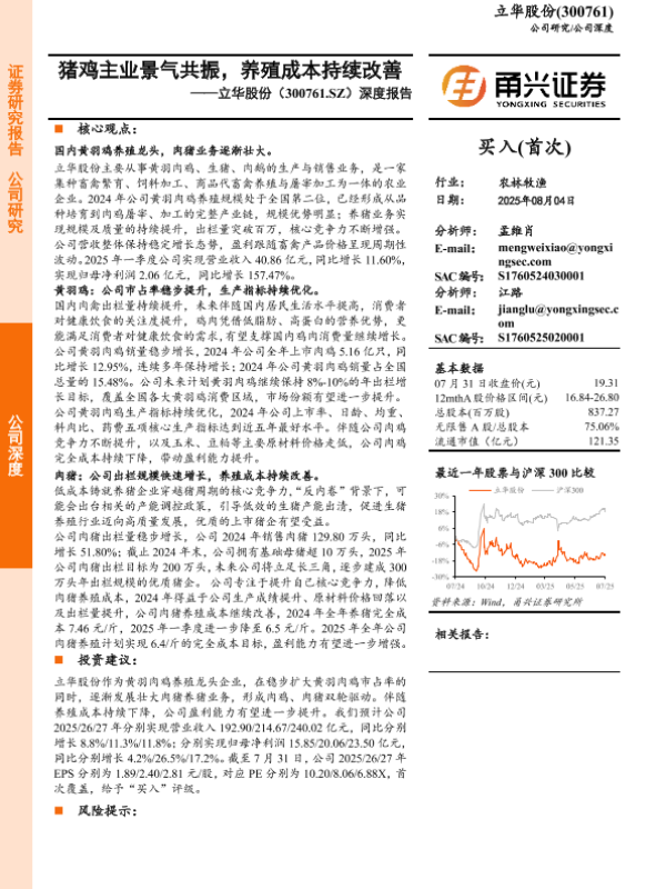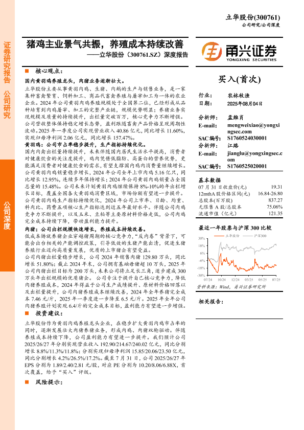 【立华股份】【20250804】立华股份-猪鸡主业景气共振,养殖成本持续改善-22页