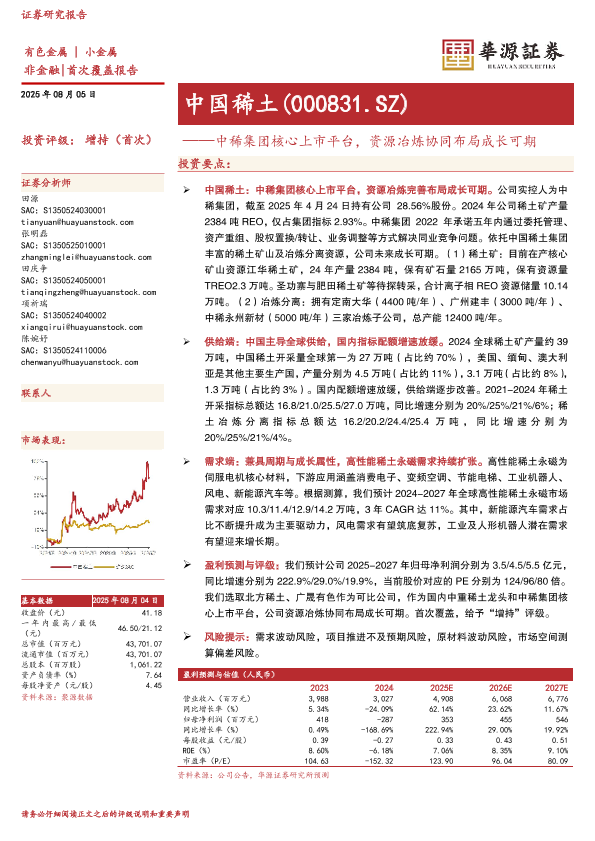 【华源证券】【20250805】中国稀土-中稀集团核心上市平台,资源冶炼协同布局成长可期-17页