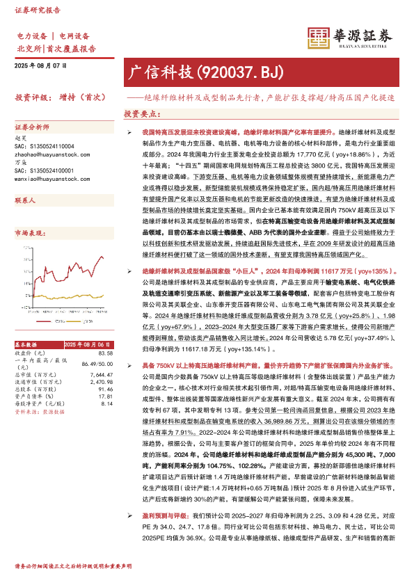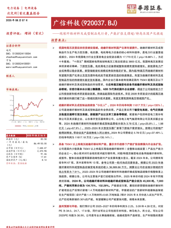 【华源证券】【20250807】广信科技-绝缘纤维材料及成型制品先行者,产能扩张支撑超/特高压国产化提速-32页