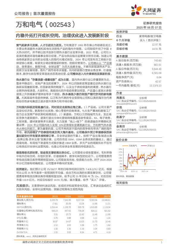 【天风证券】【20250807】万和电气-内稳外拓打开成长空间,治理优化进入发展新阶段-30页
