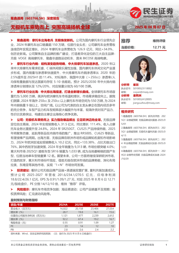 【民生证券】【20250807】隆鑫通用-无极机车乘势而上 突围高端扬帆全球-43页