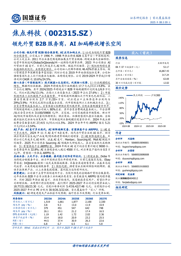 【国盛证券】【20250809】焦点科技-领先外贸B2B服务商,AI加码释放增长空间-25页