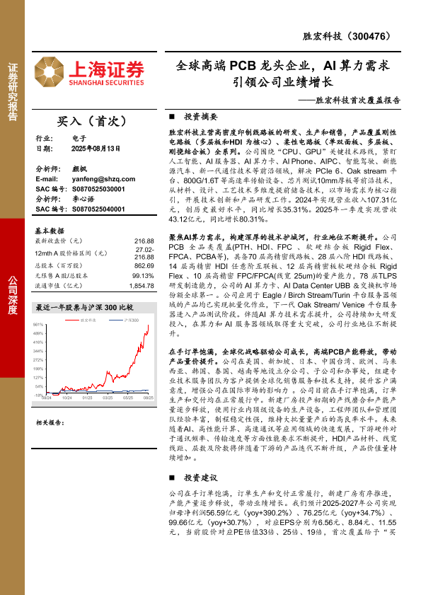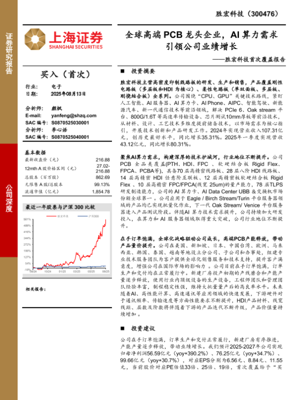 【胜宏科技(300476)】【20250813】胜宏科技-全球高端PCB龙头企业,AI算力需求引领公司业绩增长-25页