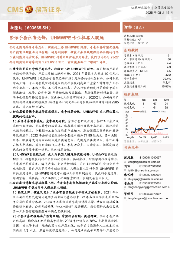 【海通证券】【20250815】康隆达-劳保手套出海先锋,UHMWPE卡位机器人腱绳-25页