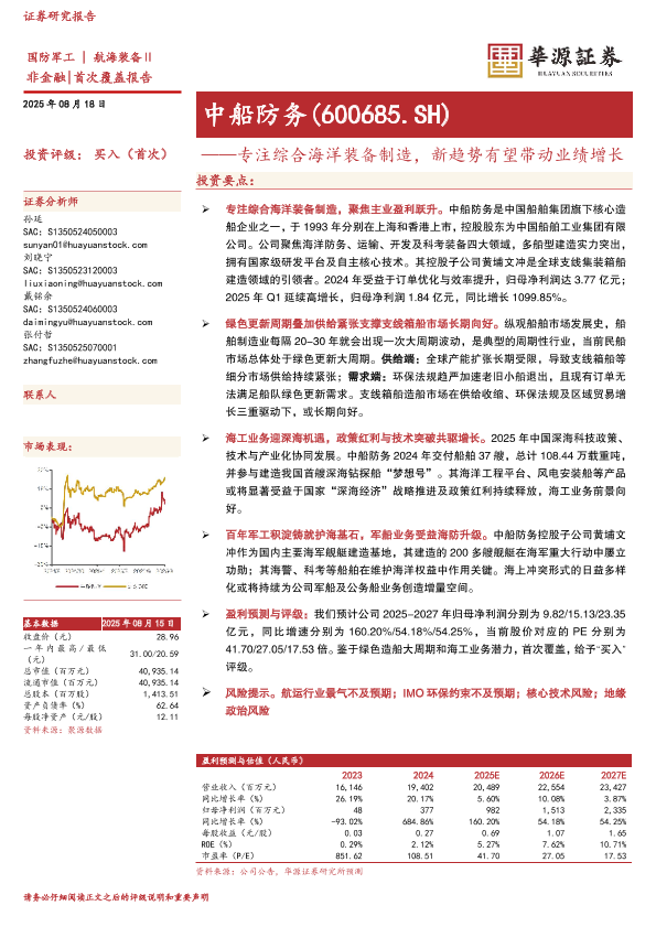 【华源证券】【20250818】中船防务-专注综合海洋装备制造,新趋势有望带动业绩增长-22页