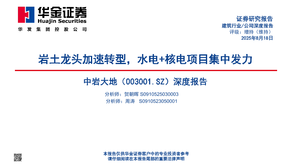 【华金证券】【20250818】中岩大地-岩土龙头加速转型,水电+核电项目集中发力-56页