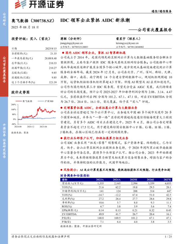 【开源证券】【20250818】奥飞数据-300738.SZ-公司首次覆盖报告:IDC领军企业紧抓AIDC新浪潮-25页