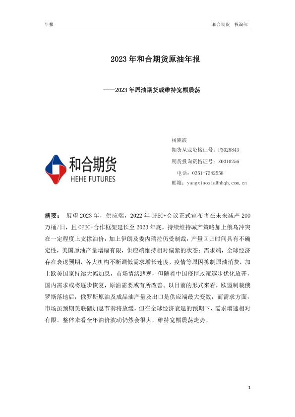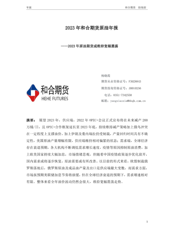 【和合期货】【20230106】2023年和合期货原油年报:2023年原油期货或维持宽幅震荡-16页