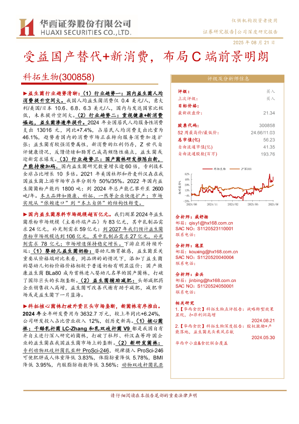 【华西证券】【20250821】科拓生物(300858)-受益国产替代+新消费,布局C端前景明朗-24页