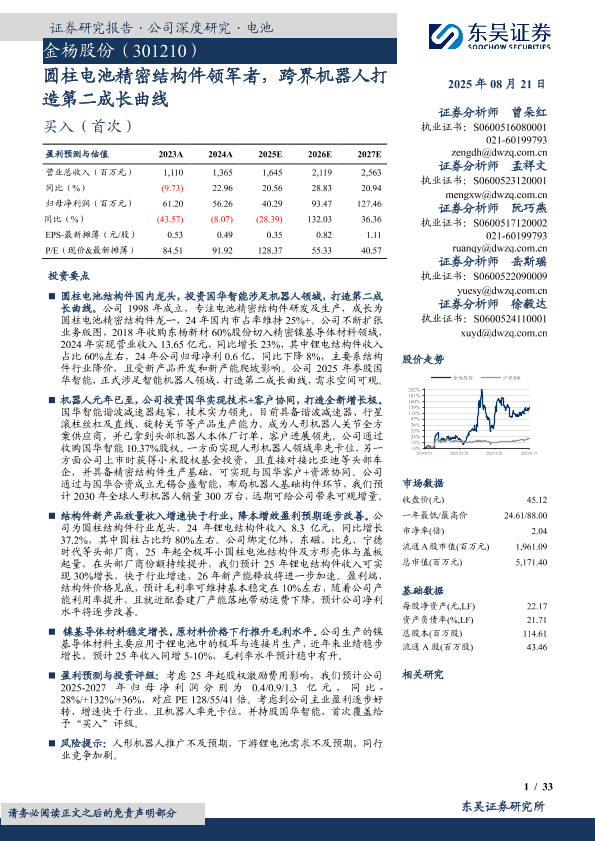 【东吴证券】【20250821】金杨股份-圆柱电池精密结构件领军者,跨界机器人打造第二成长曲线-33页