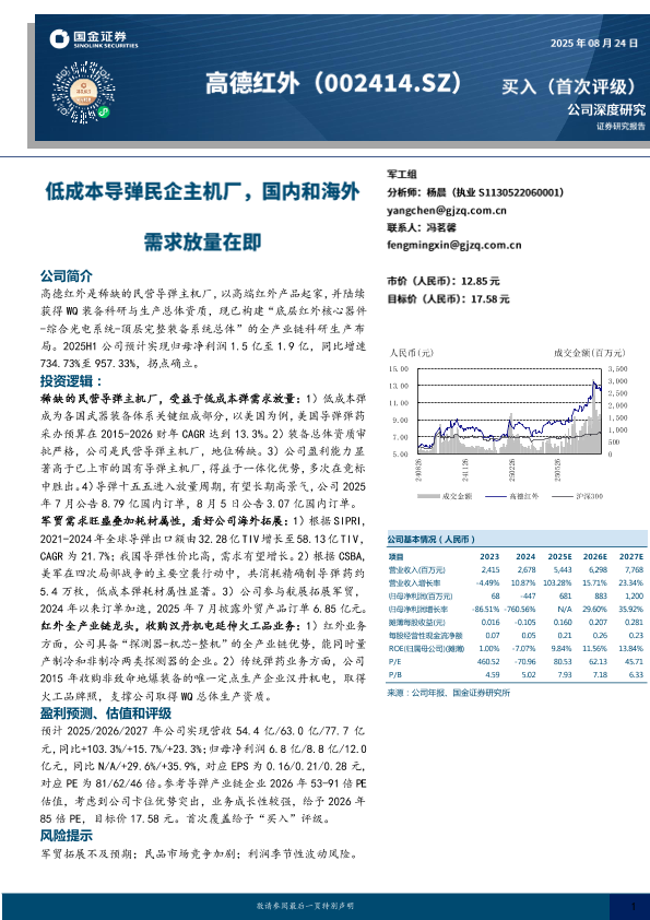 【高德红外(002414.SZ)】【202508】高德红外-低成本导弹民企主机厂,国内和海外需求放量在即-23页