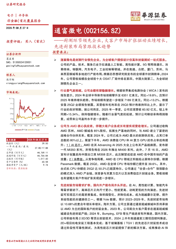 【华源证券】【20250827】通富微电-封测环节领先企业,大客户市场扩张驱动业绩增长-先进封装布局紧跟技术趋势-26页