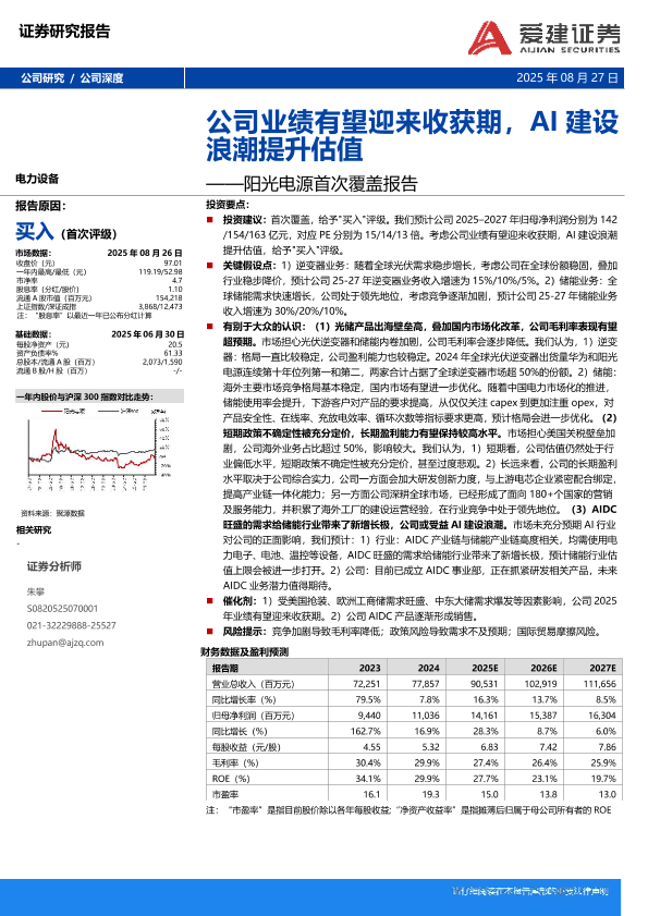 【爱建证券】【20250827】阳光电源-公司业绩有望迎来收获期,AI建设浪潮提升估值-5页