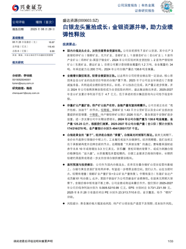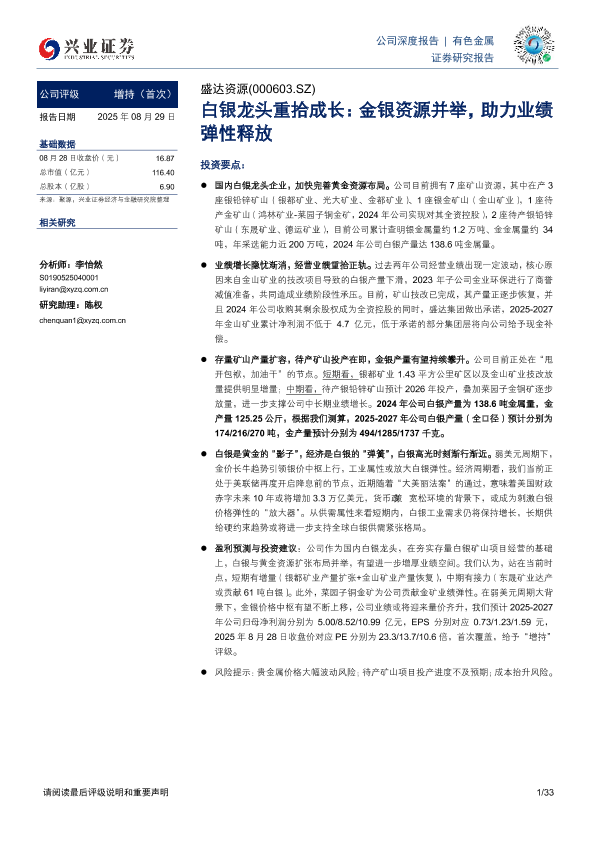 【兴业证券】【20250829】盛达资源-白银龙头重拾成长:金银资源并举,助力业绩弹性释放-33页