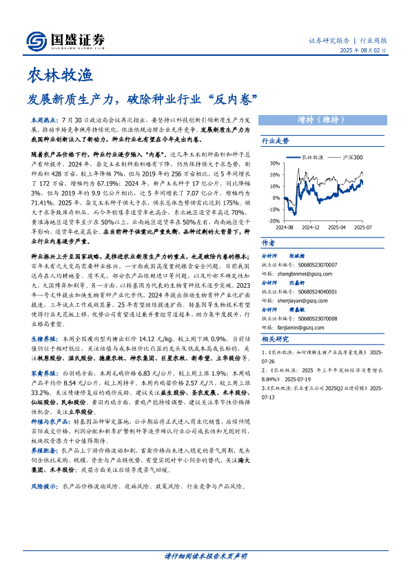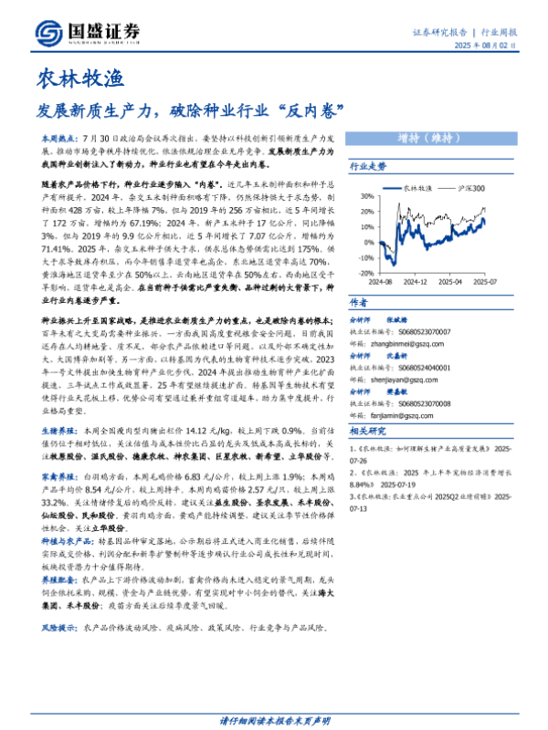 【国盛证券】【20250802】农林牧渔行业周报:发展新质生产力,破除种业行业“反内卷”-12页