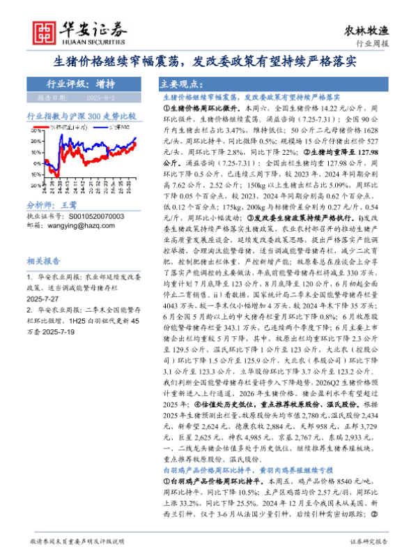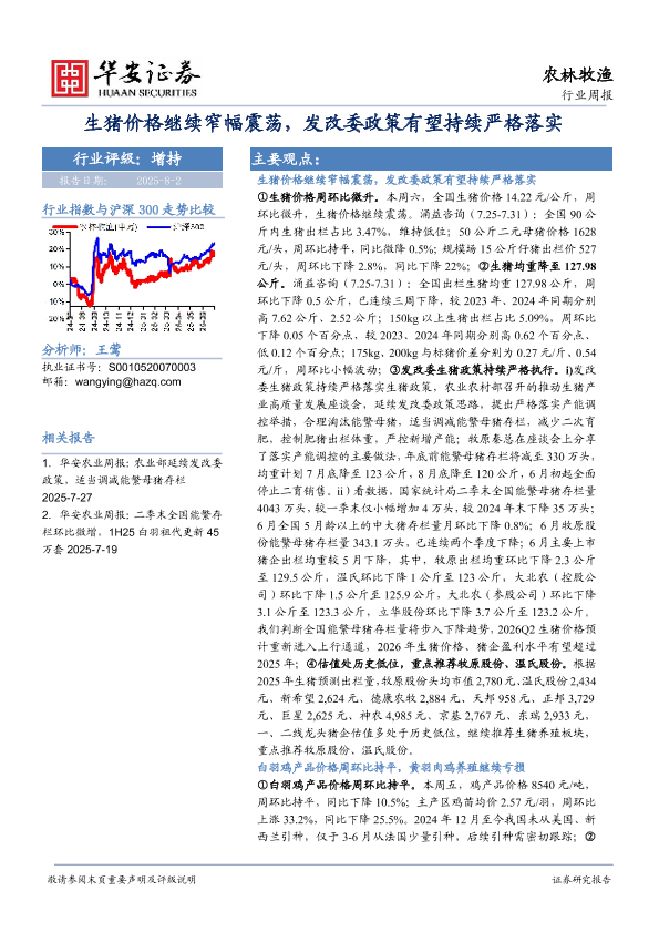 【华安证券农林牧渔】【20250802】生猪价格继续窄幅震荡-发改委政策有望持续严格落实-39页