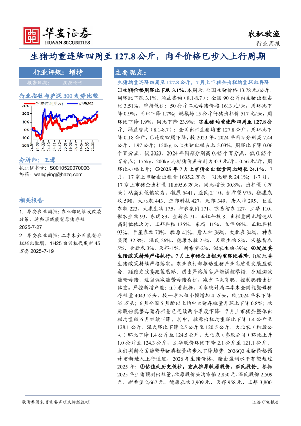 【华安证券】【20250809】生猪均重连降四周至127.8公斤,肉牛价格已步入上行周期-39页