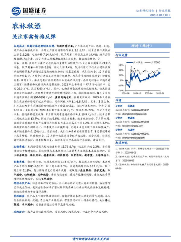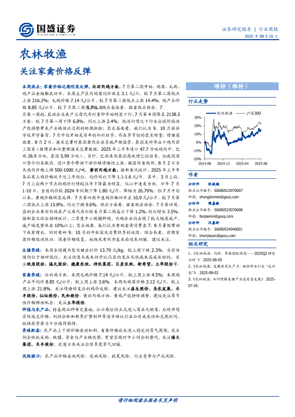【国盛证券】【20250810】农林牧渔行业周报:关注家禽价格反弹-12页