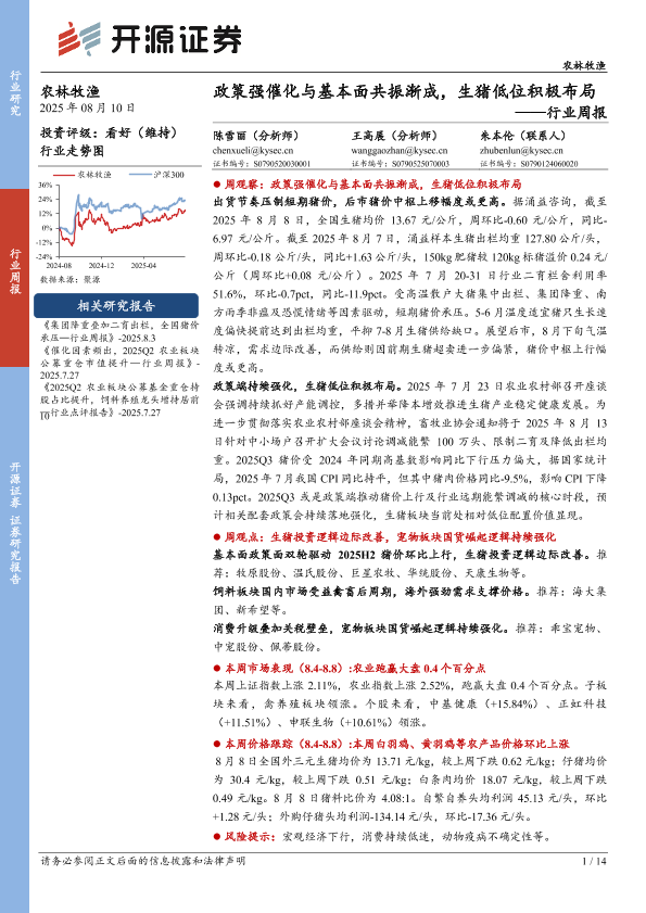【开源证券】【20250810】农林牧渔行业周报:政策强催化与基本面共振渐成,生猪低位积极布局-14页