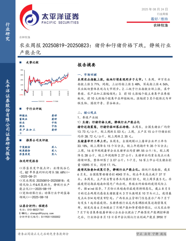 【太平洋证券】【20250824】猪价和仔猪价格下跌,静候行业产能去化-18页