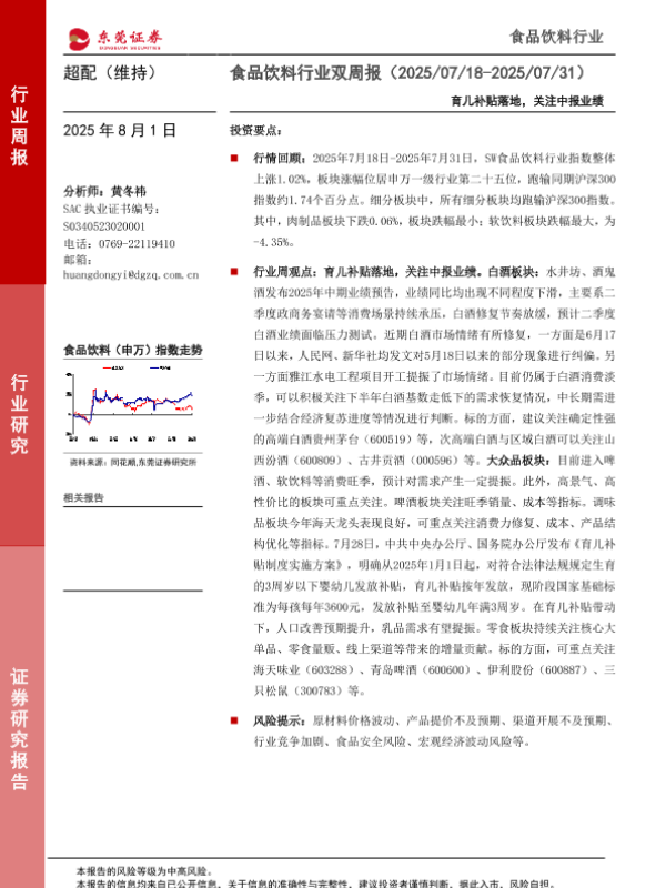 【东莞证券】【20250801】食品饮料行业-育儿补贴落地,关注中报业绩-12页
