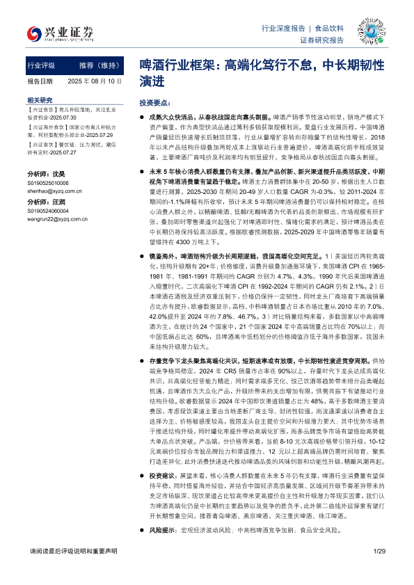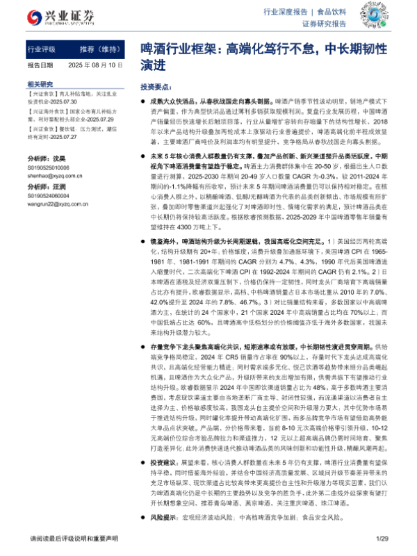 【兴业证券】【20250810】啤酒行业框架:高端化笃行不怠,中长期韧性演进-29页