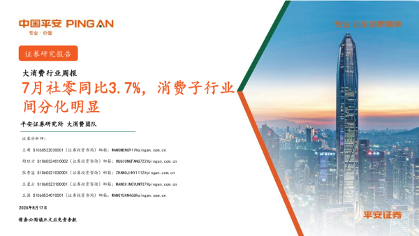 【平安证券】【20250817】大消费行业周报:7月社零同比3.7%,消费子行业间分化明显-13页