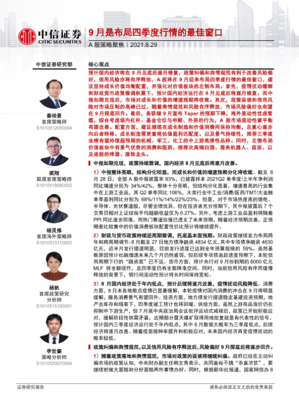 【中信证券】【20210829】A股策略聚焦:9月是布局四季度行情的最佳窗口-22页