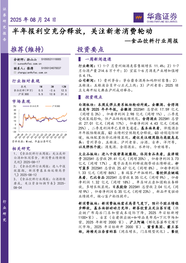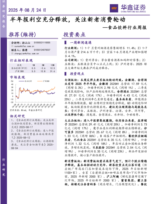 【华鑫证券】【20250824】食品饮料行业周报:半年报利空充分释放-关注新老消费轮动-19页