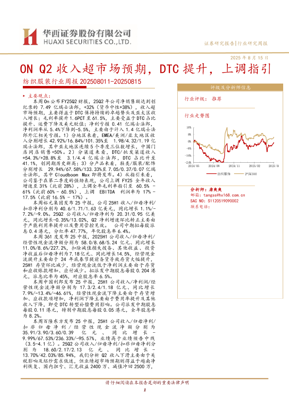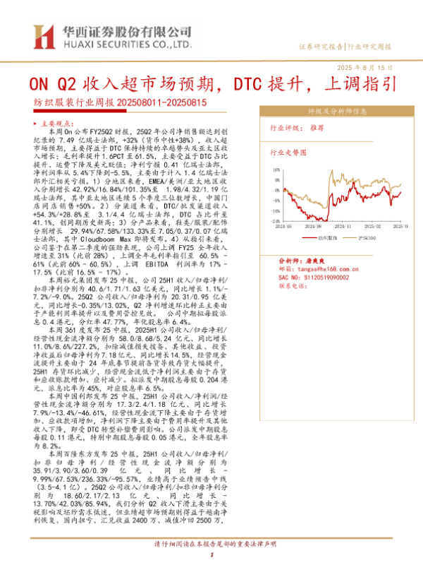 【华西证券】【20250815】ON-ON Q2收入超市场预期,DTC提升,上调指引-36页