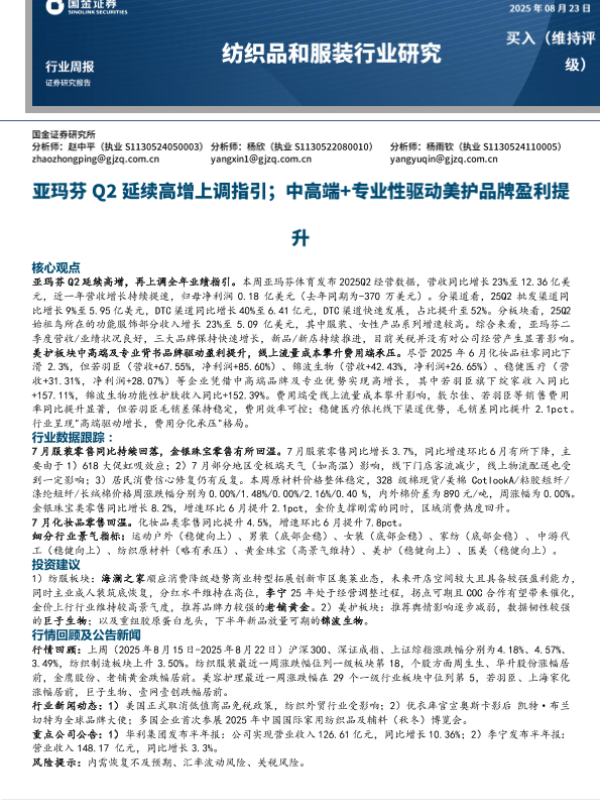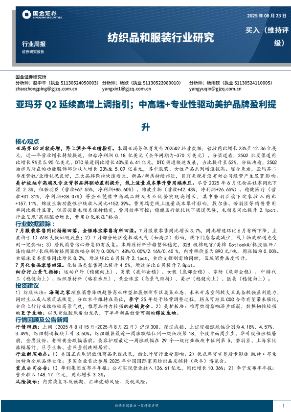 【国金证券】【20250823】亚玛芬Q2延续高增上调指引-中高端+专业性驱动美护品牌盈利提升-12页