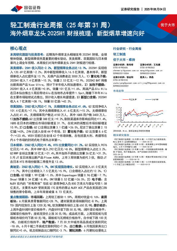 【国信证券GUOXING SECURITIES】【20250804】海外烟草龙头2025H1财报梳理-新型烟草增速向好-21页