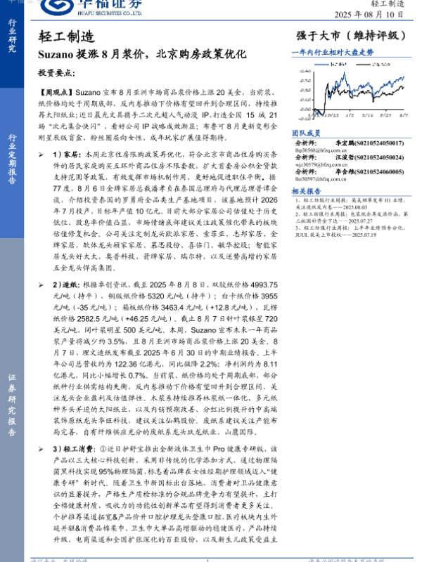 【华福证券】【20250810】Suzano提涨8月浆价,北京购房政策优化-20页