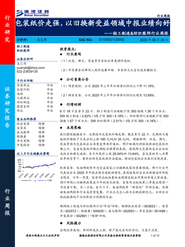 【渤海证券】【20250825】包装纸价走强,以旧换新受益领域中报业绩向好-12页