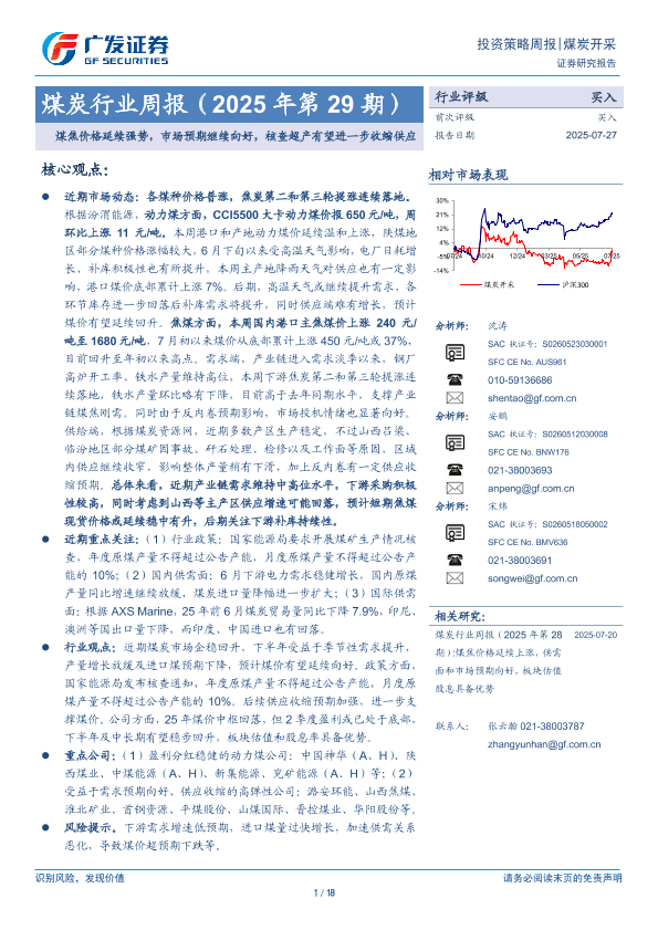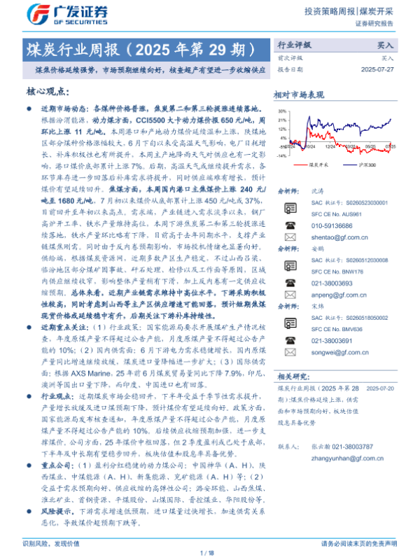 【广发证券】【20250727】煤焦价格延续强势,市场预期继续向好,核查超产有望进一步收缩供应-18页