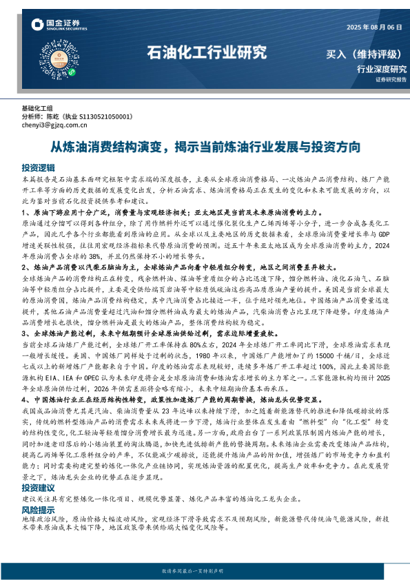 【国金证券】【20250806】石油化工行业研究:从炼油消费结构演变,揭示当前炼油行业发展与投资方向-18页
