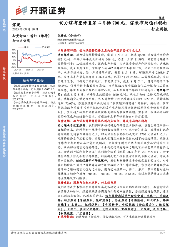 【开源证券】【20250810】动力煤有望修复第二目标700元-煤炭布局稳扎稳打-27页