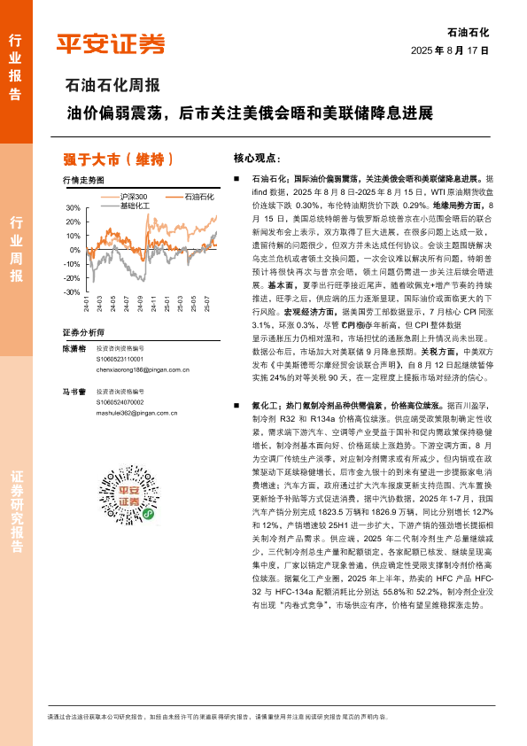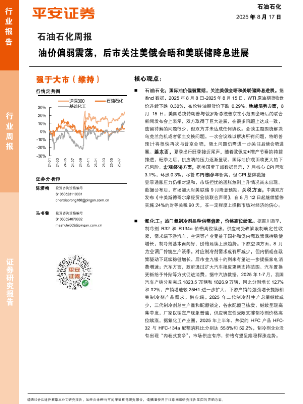 【平安证券】【20250817】石油石化行业周报:油价偏弱震荡,后市关注美俄会晤和美联储降息进展-15页