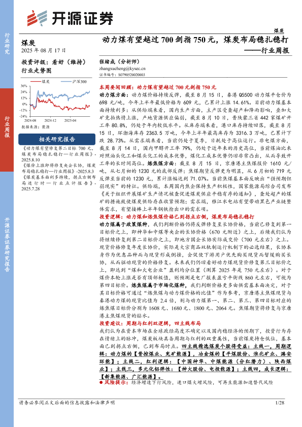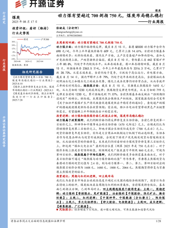 【开源证券】【20250817】动力煤有望越过700剑指750元,煤炭布局稳扎稳打-28页
