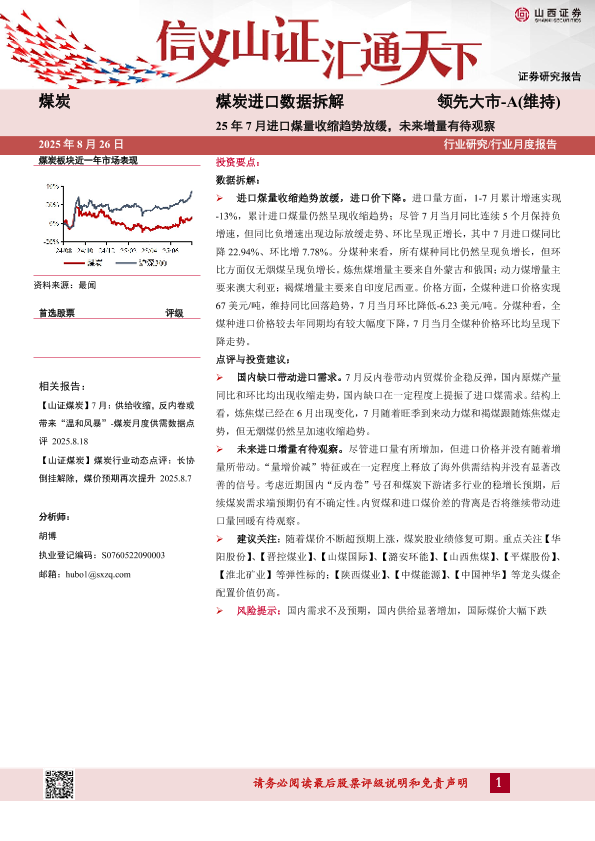 【山西证券】【20250826】煤炭进口数据拆解:25年7月进口煤量收缩趋势放缓,未来增量有待观察-10页