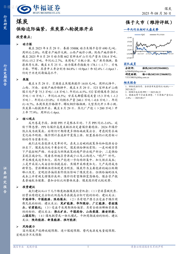 【华福证券】【20250830】煤炭行业定期报告:供给边际偏紧,焦炭第八轮提涨开启-25页