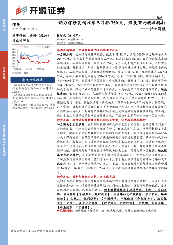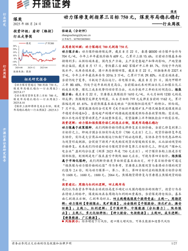 【开源证券】【20250824】动力煤修复剑指第三目标750元-煤炭布局稳扎稳打-27页