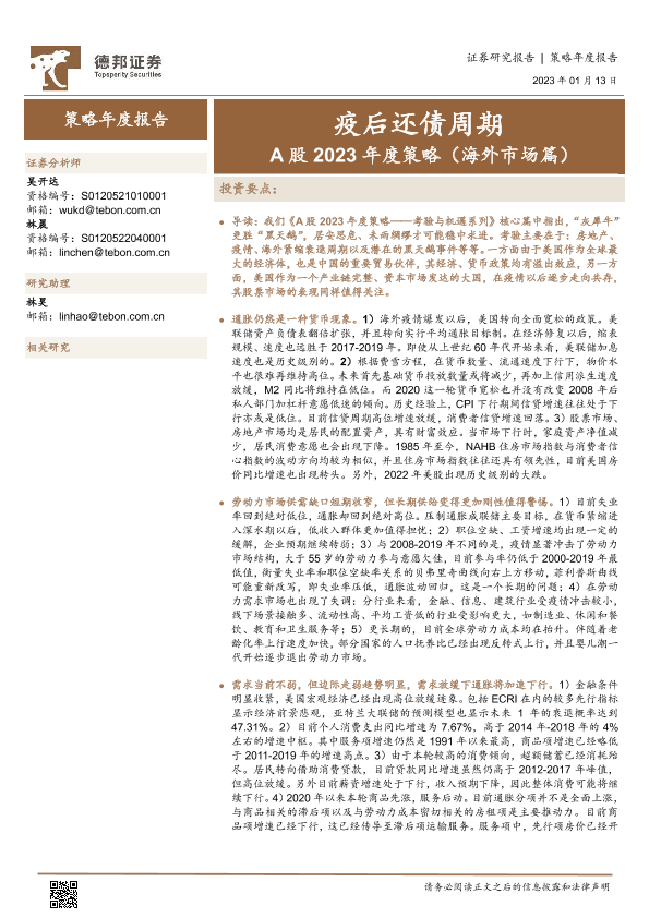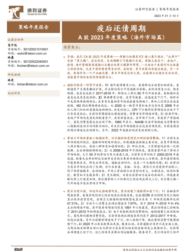【德邦证券】【20230113】A股2023年度策略(海外市场篇):疫后还债周期-42页