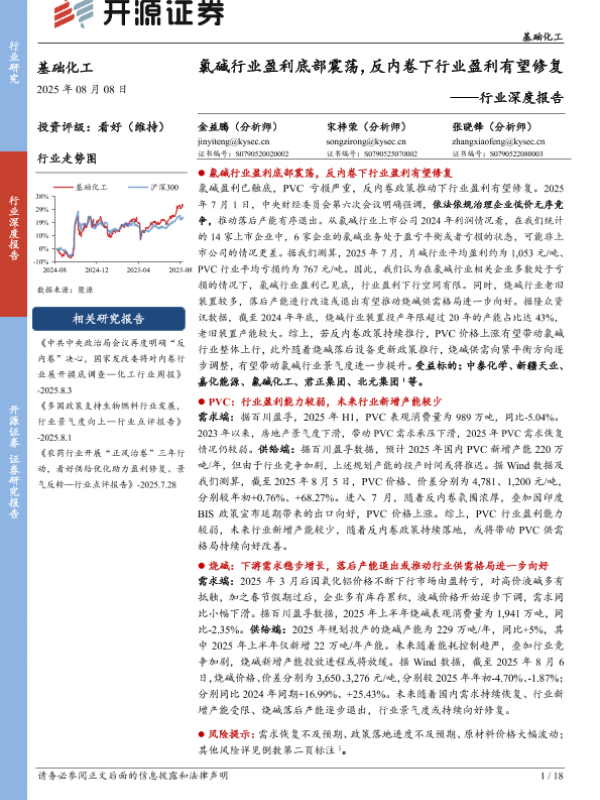 【开源证券】【20250808】氯碱行业盈利底部震荡,反内卷下行业盈利有望修复-18页
