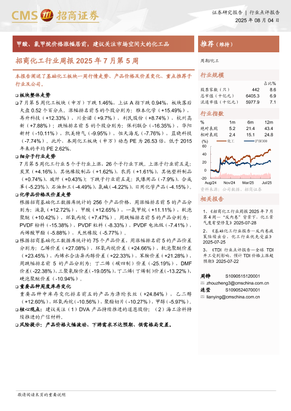 【海通证券】【20250804】甲酸、氯甲烷价格涨幅居前,建议关注市场空间大的化工品-16页