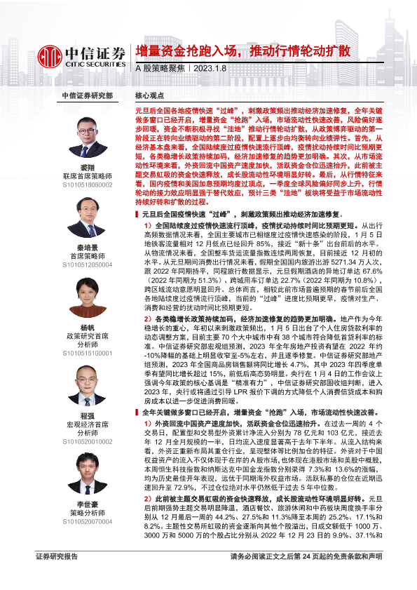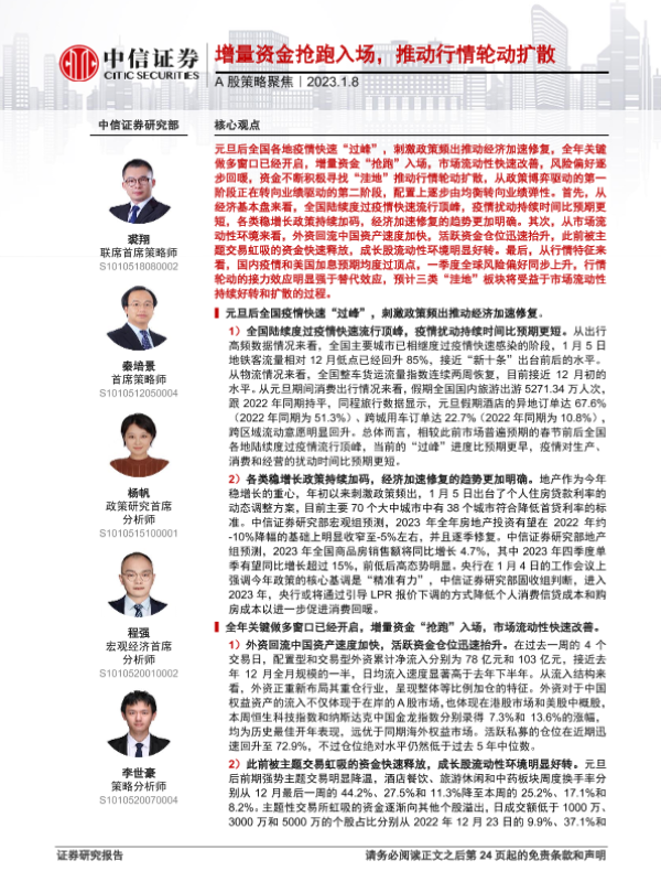 【中信证券】【20230108】A股策略聚焦:增量资金抢跑入场,推动行情轮动扩散-20页