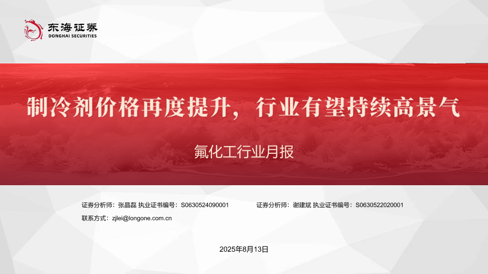 【东海证券】【20250813】氟化工行业月报:制冷剂价格再度提升-行业有望持续高景气-27页