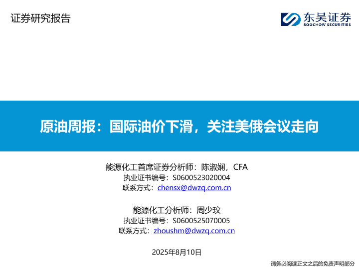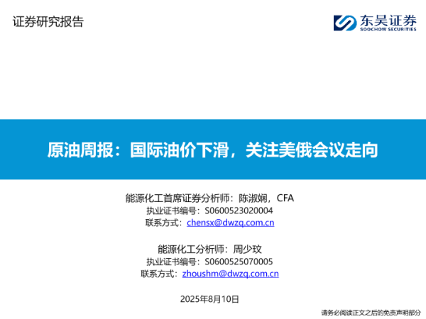 【东吴证券】【20250810】原油周报:国际油价下滑,关注美俄会议走向-60页